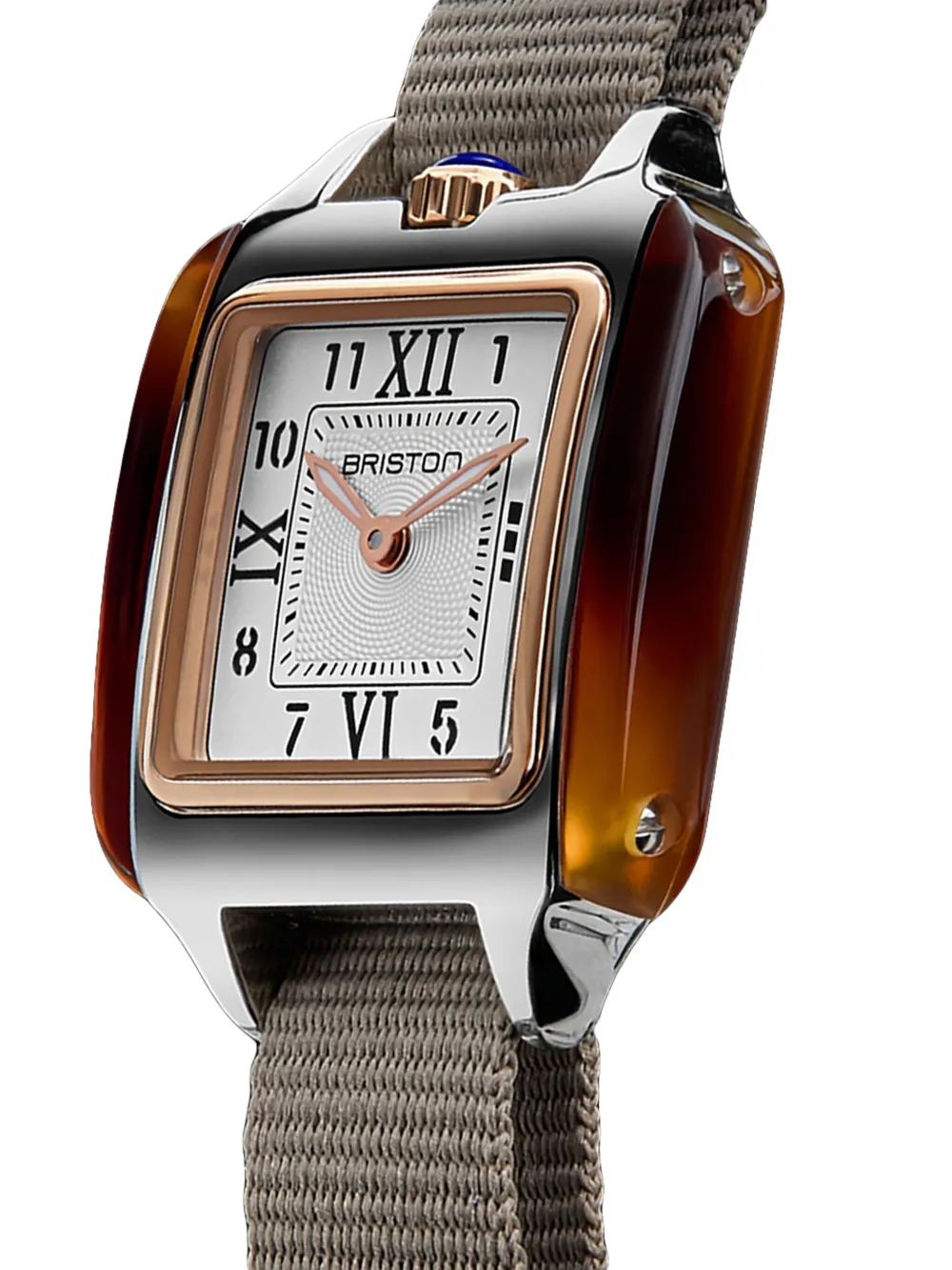 Highlights 25mm PVD-coated case quartz movement square face tortoiseshell-effect case crystal glass Roman numeral dial baton hands logo-engraved bezel lapis lazuli cabochon crown signature interchangeable NATO strap buckle fastening 42-hour power reserve water resistance up to 50m/5 ATM This item comes with a standard one-year warranty from the boutique. Made in France FARFETCH ID: 30220707 Brand style ID: 252025PRAT2NT Composition PVD, Steel, Lapis Lazuli, Crystal