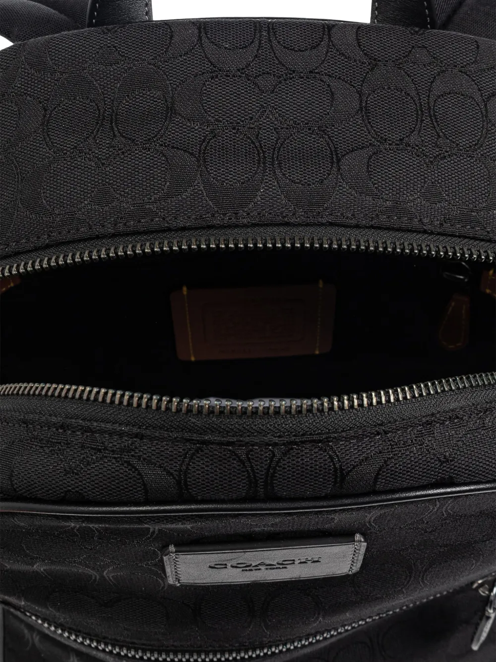 Highlights black logo print top handle top zip fastening adjustable shoulder straps front zip pocket main compartment Imported FARFETCH ID: 29549109 Brand style ID: CAK98 Composition Outer: Cotton 100%, Calf Leather 100%
