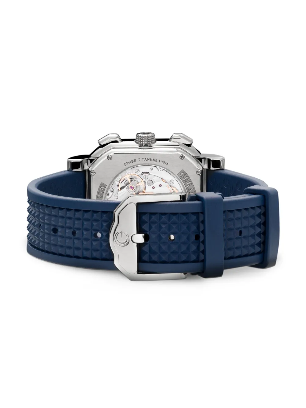 Gerald Charles' Maestro 3.0 Chronograph 41mm is a bold yet subtle piece. The navy blue construction offers a slightly curved octagonal case, with an equally-coloured dial. Finishing this modern piece is the Clous de Paris-motif, adding depth and texture to vulcanised rubber straps.