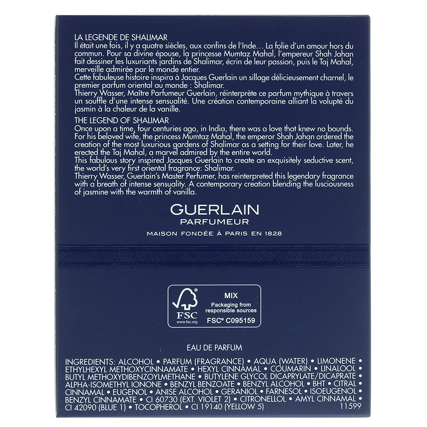Bergamot, mandarin orange, orange blossom, jasmine, benzoin, tahitian vanilla, indian vanilla and white musk