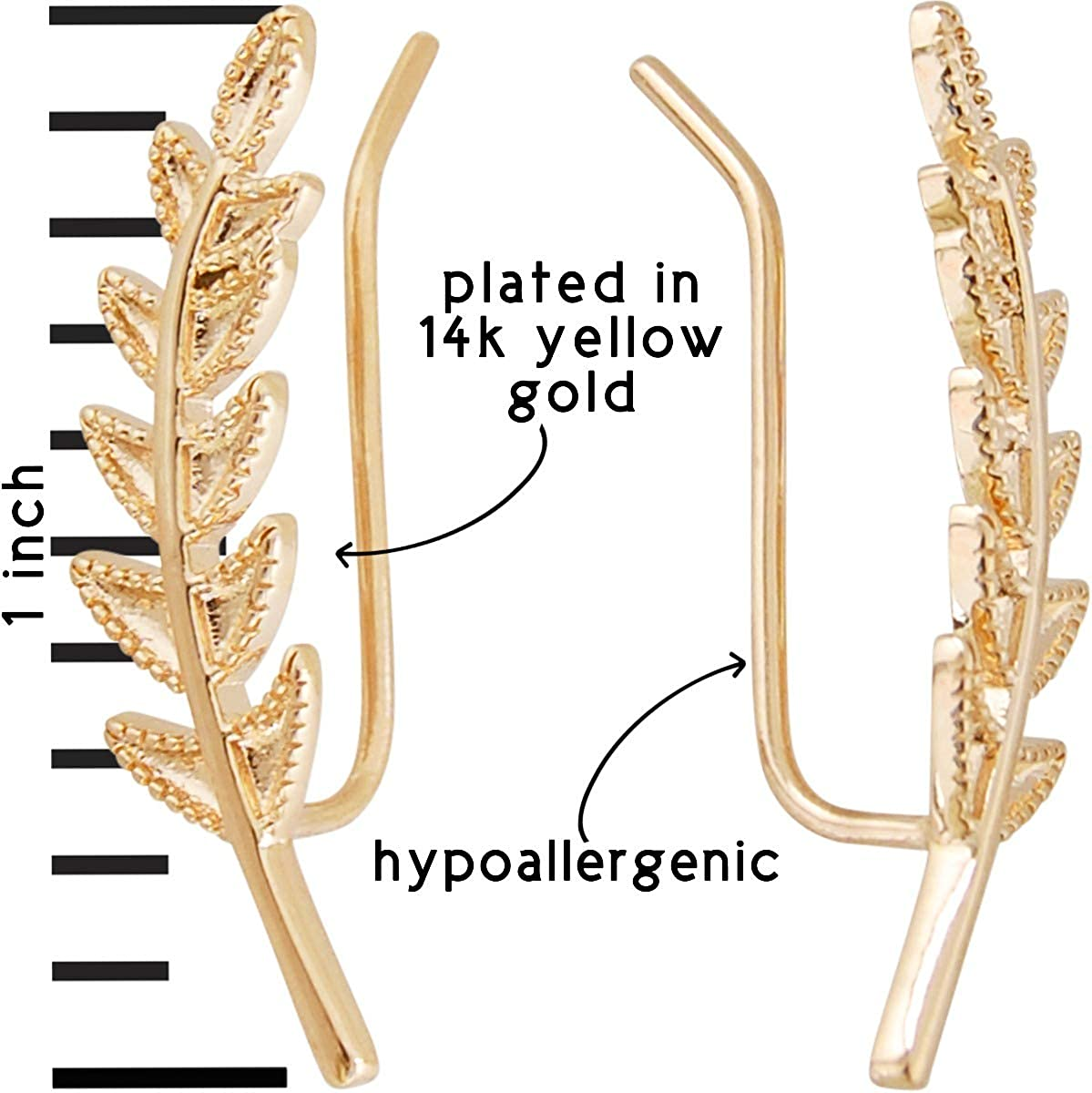 These small and delicate curved mountaineering drop earrings wrap around your ears and feature a simple yet unique twist on the classic studs for everyday wear. Specifically designed for pierced ears. Gold-plated base metal. To avoid discoloration, limit exposure to water, perfume or body cream. Humble Chic jewelry items are packaged in a signed gift box.