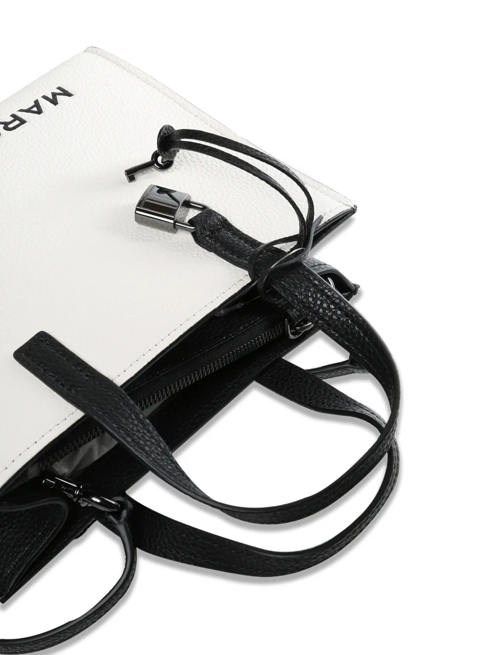Highlights black and white top-handle zip-fastening detachable shoulder strap padlock key-charm Imported FARFETCH ID: 33534376 Brand style ID: 4P4HTT003H01005 Composition Outer: Calf Leather 100%
