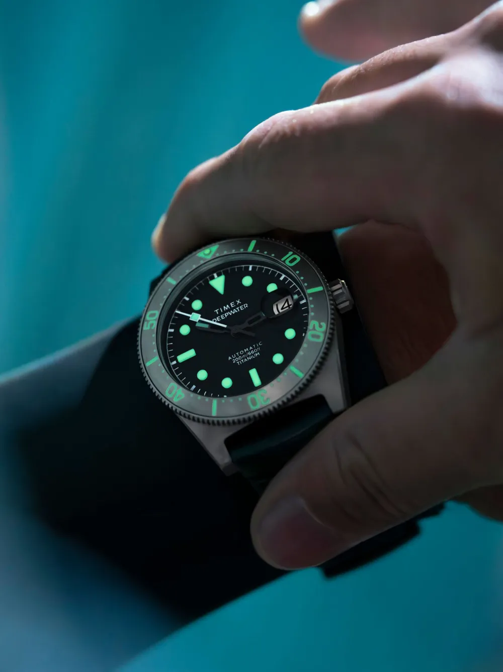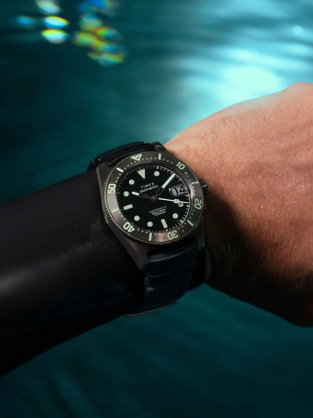 Highlights stainless steel automatic movement luminescent dial illuminated hands day-date display bezel setting acrylic glass screw-down crown rubber strap pin-buckle fastening Imported FARFETCH ID: 25002140 Brand style ID: TW2W73800 Composition Rubber 100%, Titanium 100%