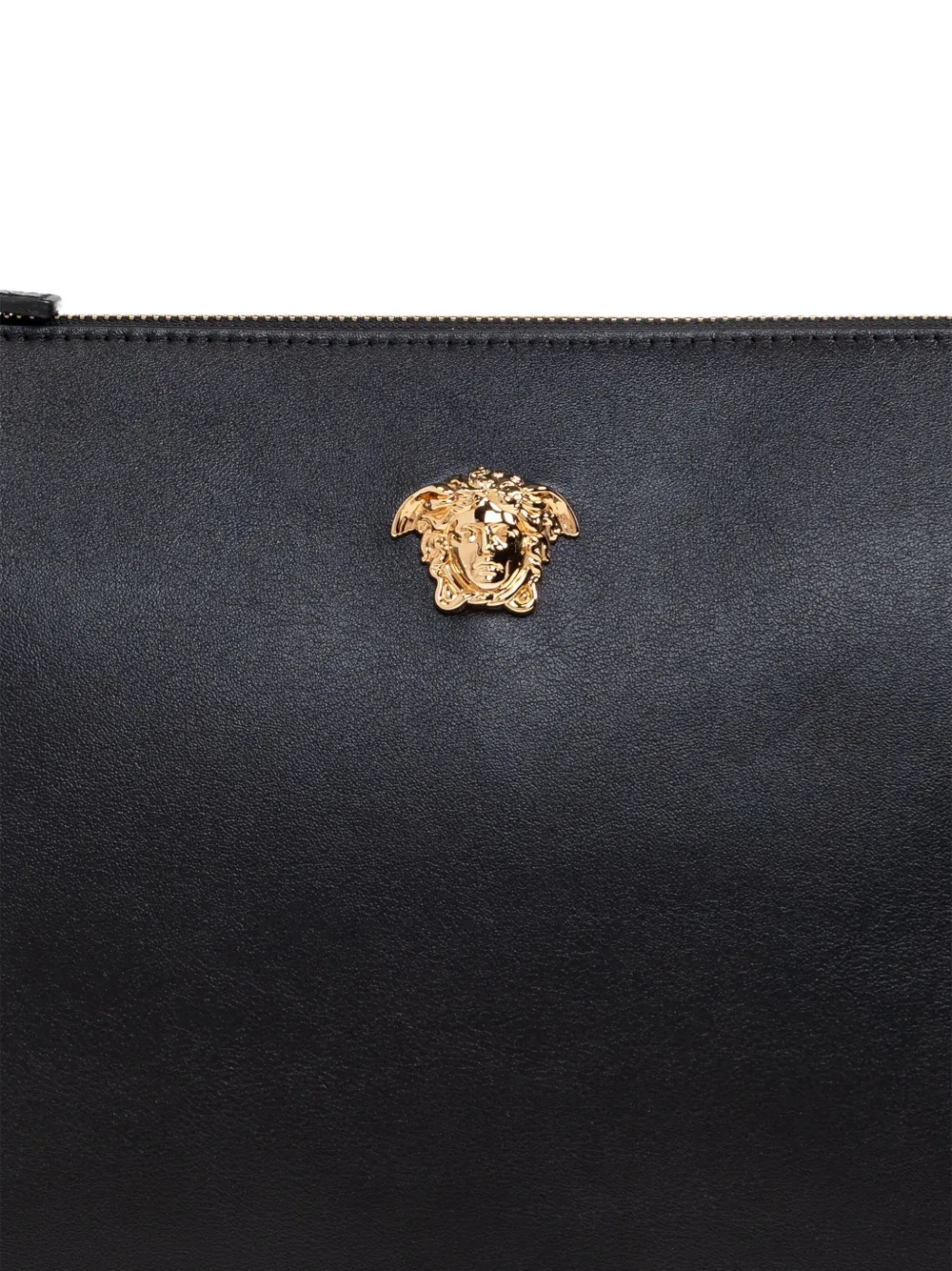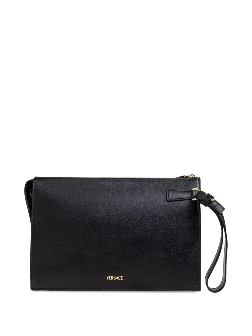 Highlights black calf leather gold-tone La Medusa hardware zip fastening wrist strap Made in Italy FARFETCH ID: 32552640 Brand style ID: 10225921A146751B00V Composition Outer: Calf Leather 100% Lining: Calf Leather 100%