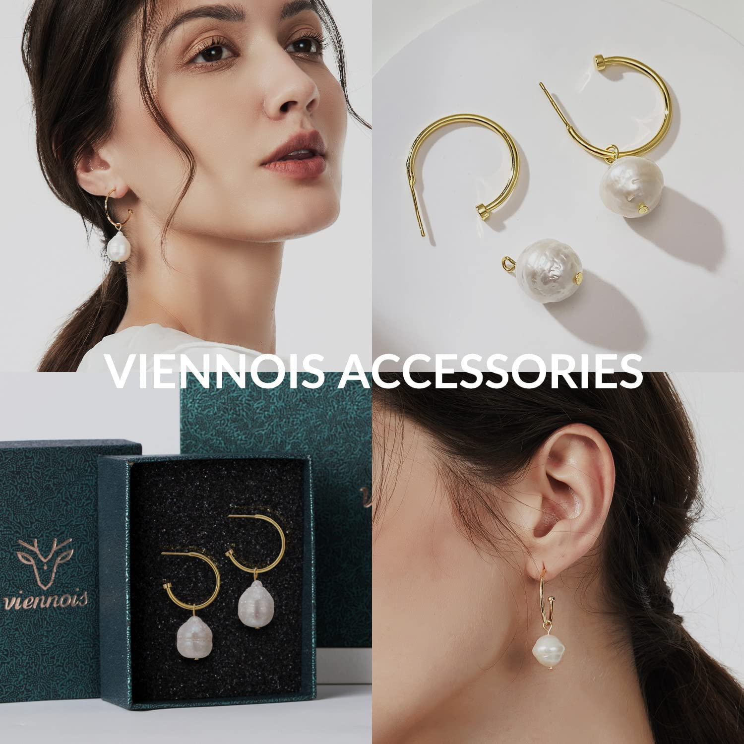 VIENNOIS 12mm Freshwater Cultured Baroque Pearl Earrings Pendant Gold Huggie Hoop Earrings Ladies Girls Jewelry Gifts Bridesmaids