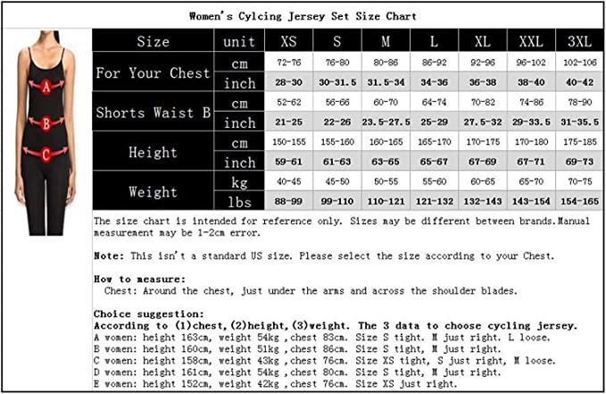 Tight and unique design:shapes your body and makes your cycling more attractive. Professional Cycling Jersey Fabric:Highly breathable, highly absorbent, cycling fabrics keeps you dry and cool when you ride. Mesh fabric design:for the jersey with good function keeps you drying and cooling. Breathable mesh clothes:make your cycling more comfortable. Fast drying:The fabric absorbs excess moisture, keep the body dry up. Pocket on the back of jersey:Back Three Bags Design For Easy Storage Of Small Items,Reflective Stickers Let You Ride Safely At Night . 3D gel cushion,breathable and shockproof Size: S, M, L, XL, 2XL, 3XL (optional)